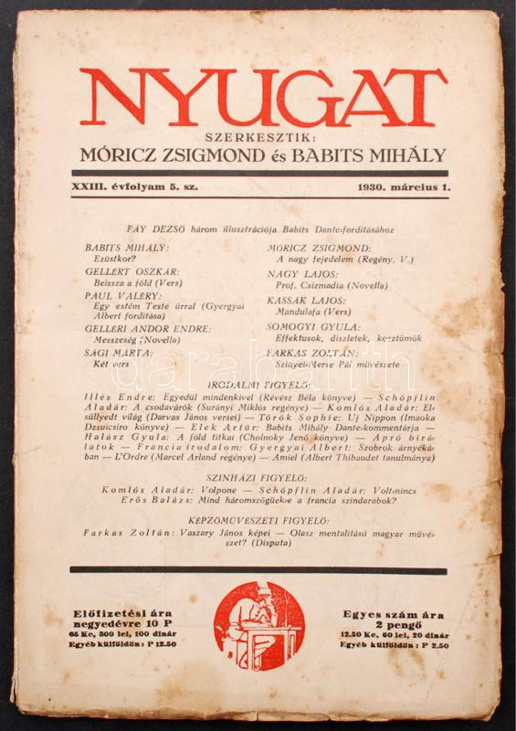 https://www.darabanth.com/en/248-Online-auction/248.0/Other-collectibles/Printed-Materials~200007/1929-A-Nyugat-cimu-folyoirat-XXIII-evfolyamanak-5-szama-benne-Babits-Mihaly-Kassak-Lajos~II1048411