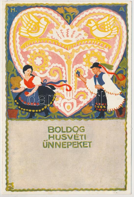 Boldog Húsvéti Ünnepeket, népimotívumos nyomtatvány, 14x10cm