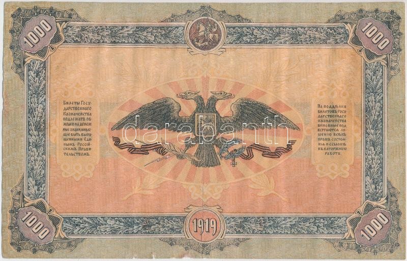 Description: Orosz Polgárháború / Dél-Oroszország / Wrangel Hadserege 1919. 1000R T:III kissé hullámos