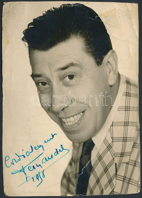 Fernandel (1903-1971) aláírása az őt ábrázoló fotón / autograph signat...