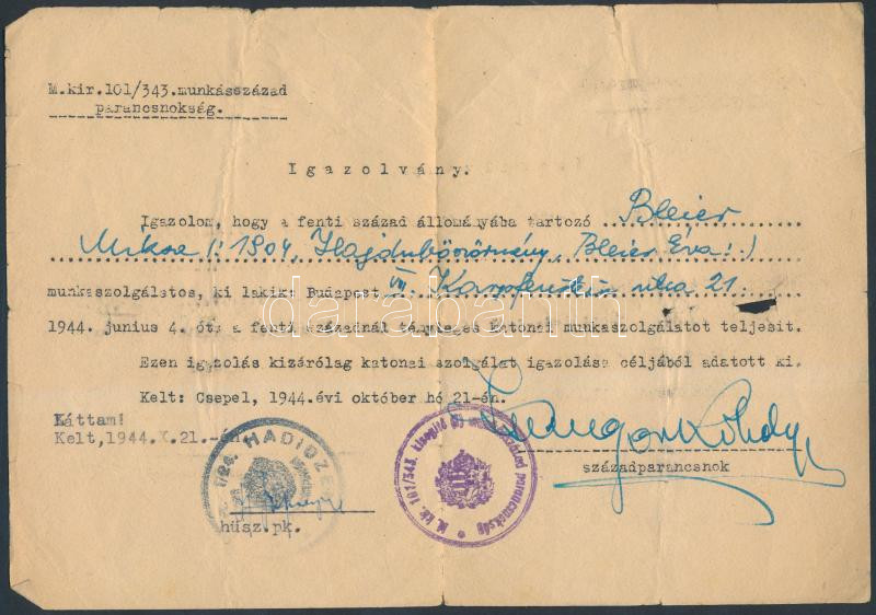https://www.darabanth.com/en/249-Online-auction/249.0/Other-collectibles/Military~200024/1944-Munkaszolgalatos-igazolvany-munkasszazad-korpecsettel-kisse-viseltes-allapotban-14x2~II1191950