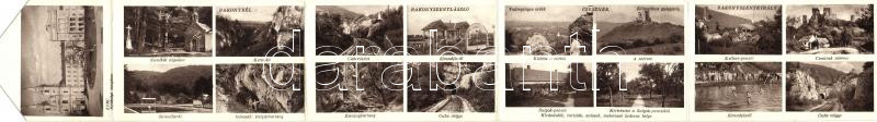 Bakonybél, Bakonyszentlászló, Bakonyszentkirály, Csesznek, Zirc; kihajtható többnézetes képeslap / folding card
