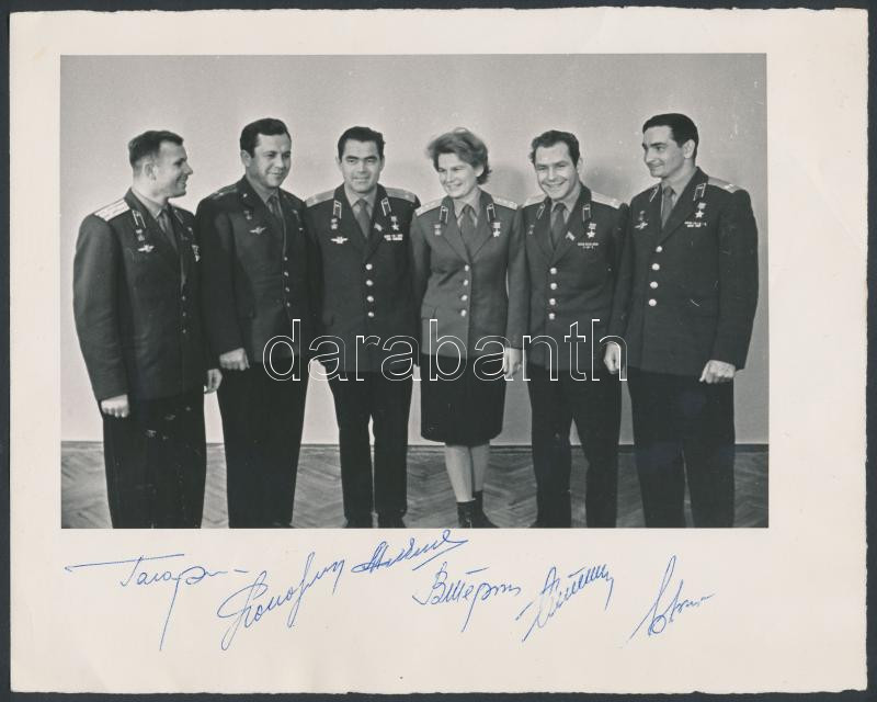 cca 1965 Szovjet űrhajósokról készült csoportkép, az űrhajósok saját k... https://www.darabanth.com/en/25-Major-auction/25.1/Art-and-collectibles/Autographs~9772/cca-1965-Szovjet-urhajosokrol-keszult-csoportkep-az-urhajosok-sajat-kezu-alairasaval-~II1373493