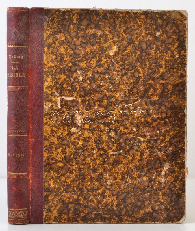 Description: Lemaistre de Sacy - Le P. Lallement - M. P. Lallement: La Sainte Bible. Gravures Traduite Sur Le Latin De La Vulgate. Paris, 1857, L. Curmer. Korabeli félbőr kötés, 3 p. + 50 t. A könyv 50 metszetet tartalmaz a Bibliáról. A borítója kopottas. Ezt leszámítva jó állapotban van. /