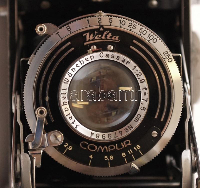Welta Weltax 6x6/4,5x6 cm kamera Steinheil Cassar 1:2,9/7,5 cm objektí... https://www.darabanth.com/en/25-Major-auction/25.1/Art-and-collectibles/Cameras-film-accesories~9768/Welta-Weltax6x64-5x6-cm-kamera-Steinheil-Cassar-12-97-5-cm-objektivvel-Welta-Compur-zarral-bC5~II1371146