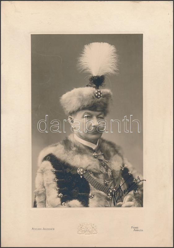 Description: 1909 Gróf Wickenburg István (1859-1931) fiumei kormányzó díszmagyar ruhás fotója saját kezű aláírásával / Governor of Fiume with autograph signature, Photo Jellusich. 21x31 cm