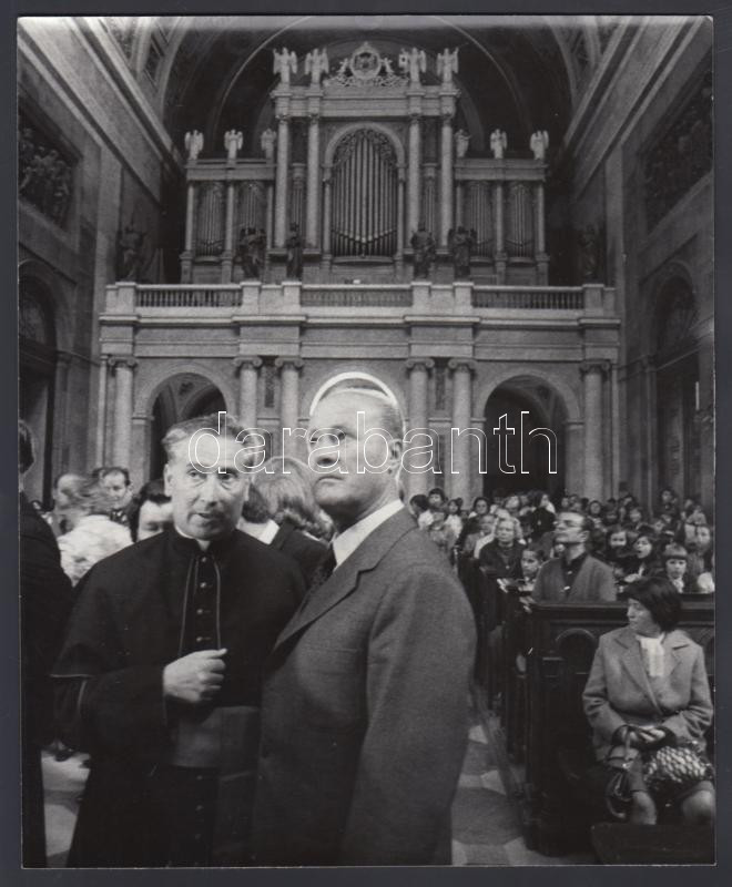 Description: 1975 Balla Demeter: Losonczi Pál Kovács Tiborral(az esztergomi bazilika plébánosával) az esztergomi bazilikában, fotómontázs, pecséttel jelzett, 21x17 cm
