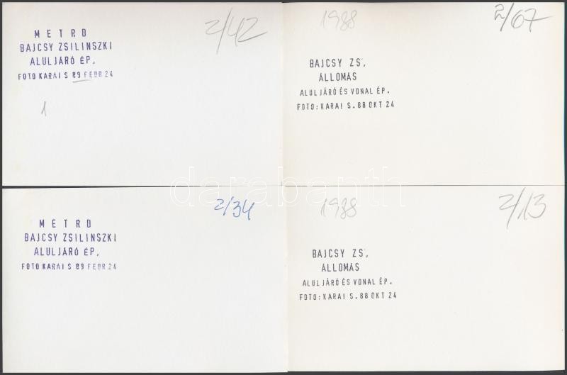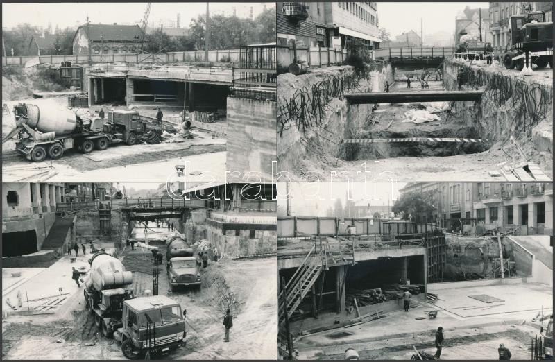 Description: 1982-1988 Budapest, Újpest, Bajcsy-Zsilinszky úti aluljáró építése előtti és alatti állapotok, 30 db vintage fotó, feliratozva, Karai Sándor pecsétjével, 9x14 cm és 10x15 cm