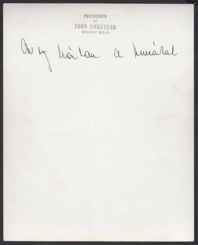 Description: John Engstead (1909-1983) hollywoodi fotós: Gábor Zsazsa kaliforniai birtokán negyedik férjével. Herbert Hutnerrel. Hátoldalt a művésznő kézírása. Pecséttel jelzett. /