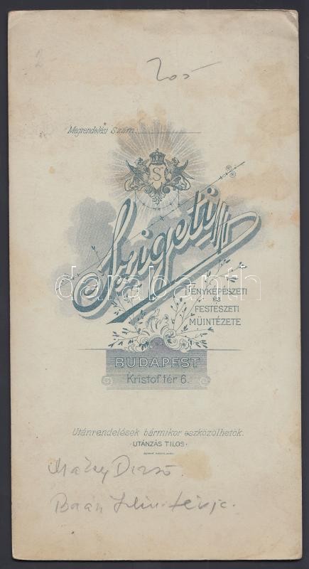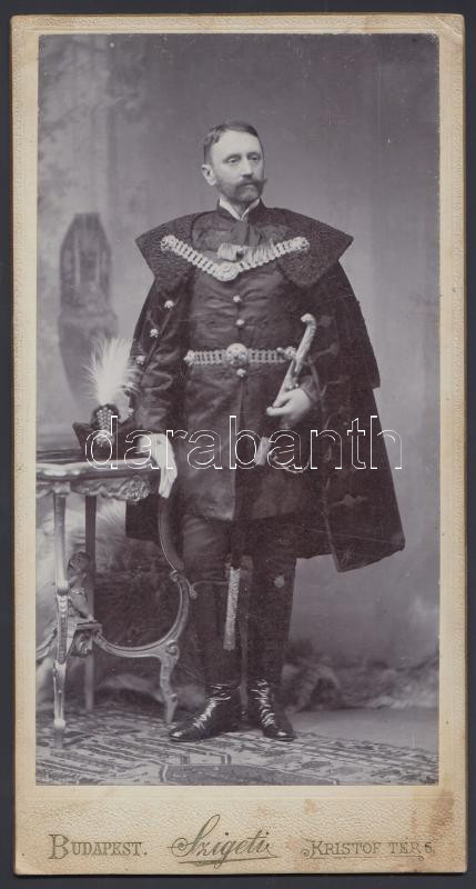cca 1900 Makay Dezső (1850-1927) bíró, jogtudós portréja, keményhátú fotó, Szigeti budapesti műterméből, hátulján feliratozva, 21,5×11,5 cm / cca 1900 Portrait of Dezső Makay (1850-1927) judge, jurist, from the studio of Szigeti in Budapest, with notes on its back, 21,5×11,5 cm