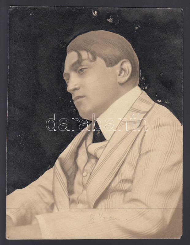 cca 1915 Ady Endre retusált és hátterében festékkel megfestett fotója...