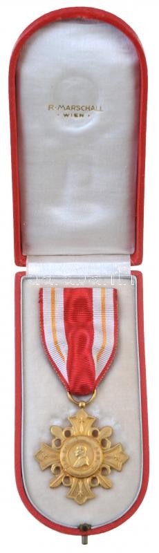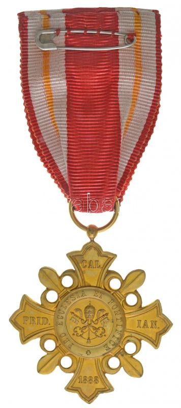 Description: Vatikán 1888. "Pro Ecclesia et Pontifice kitüntetés arany fokozata" aranyozott Br kitüntetés mellszalagon, eredeti gyártói "R. MARSCHALL WIEN" tokban T:1- /