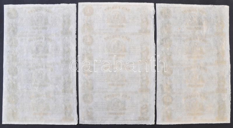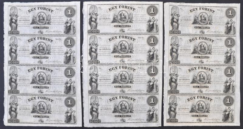 1852. 1Ft "Kossuth bankó" kitöltetlen A,B,C,D 4-es ívben, nyomdai ujjlenyomattal (3x) T:I,I- / Hungary 1852. 1 Forint blokk of 4 (A,B,C,D) without date and serial number with black fingerprints (3x) C:UNC,AU Adamo G122e