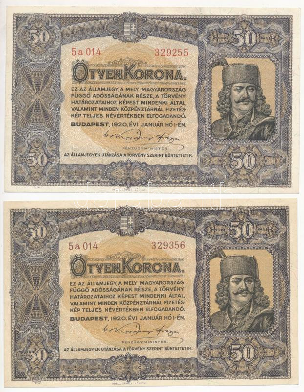 1920. 50K "Orell Füssli Zürich" (2x) egyik vörösesbarna sor- és soroza... https://www.darabanth.com/en/25-Major-auction/25.1/Numismatics/Hungarian-and-foreign-banknotes~9745/1920-50K-Orell-Fussli-Zurich-2x-egyik-vorosesbarna-sor-es-sorozatszammal-TI---Hungary~II1371026