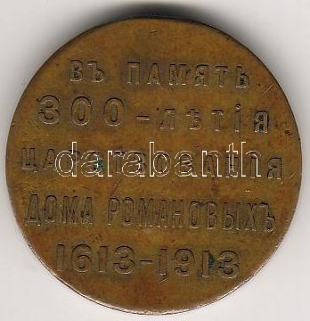 https://www.darabanth.com/en/25-Online-auction/25.0/Numismatics/~92/Oroszorszag-1913-Romanov-dinasztia-300-eves-bronz-T23~II47527