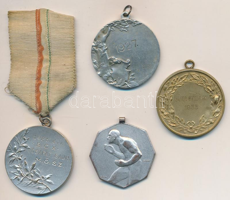 1926-1933. 4db klf díjérem, közte "1926 évi box csapat bajn. M.Ő.SZ." ...