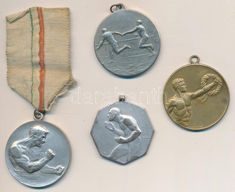 1926-1933. 4db klf díjérem, közte "1926 évi box csapat bajn. M.Ő.SZ." ezüstözött Br díjérem "Huguenin" gyártói jelzéssel, mellszalagon T:2,2-