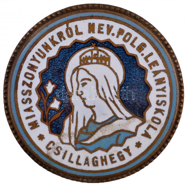 ~1930. "Miasszonyunkról Nevezett Polgári Leányiskola - Csillaghegy" zománcozott fém jelvény (35mm) T:2