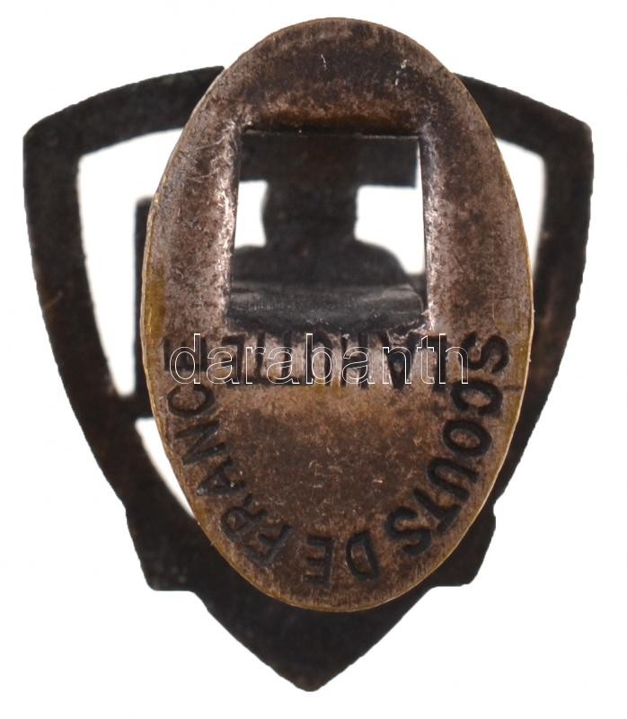 Description: Franciaország DN Cserkész gomblyukjelvény hátoldalán "SCOUTS DE FRANCE - LA HUTTE" felirattal (17x15mm) T:2