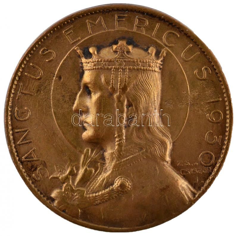 Zsákodi Csiszér János (1883-1953) 1930. "Sanctus Emericus" Br jelvény "LUDVIG BP THÉK U. 44." gyártói jelzéssel (30mm) + DN "Elsősegély" zománcozott fém jelvény (11mm) T:2,2-