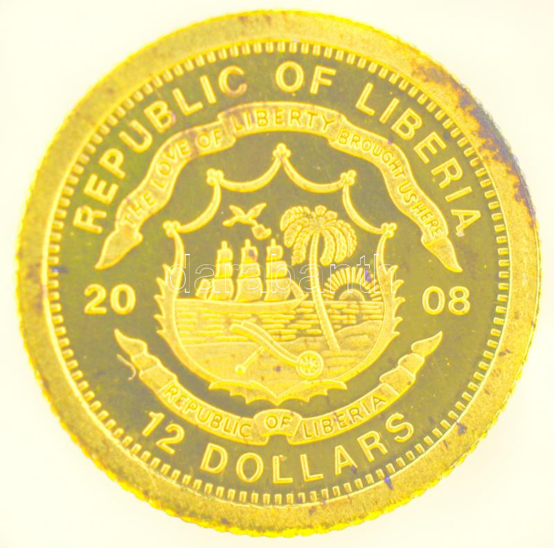 Description: Libéria 2008. 12$ Au "Colosseum" dísztokban tanúsítvánnyal (0.5g/0.999) T:PP