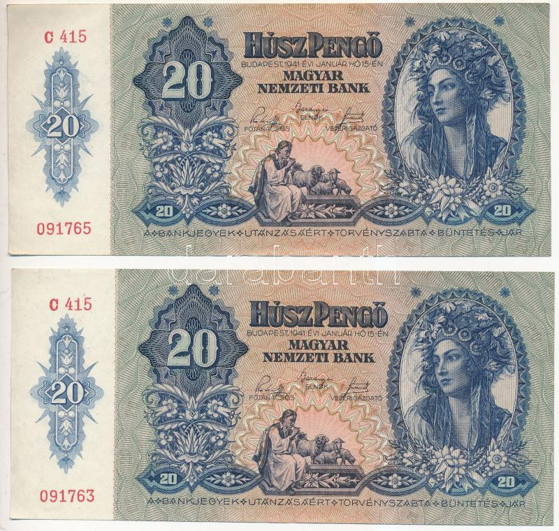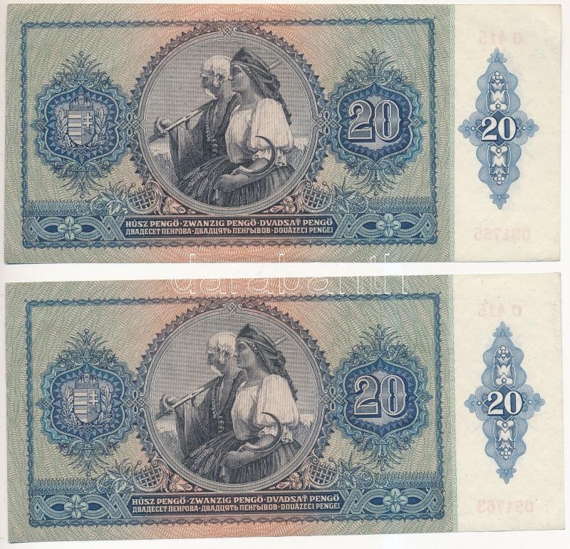 https://www.darabanth.com/en/250-Online-auction/250.0/Numismatics/Hungarian-Banknotes~7/1941-20P-2x-kozeli-sorszam-TI-II~II1205592