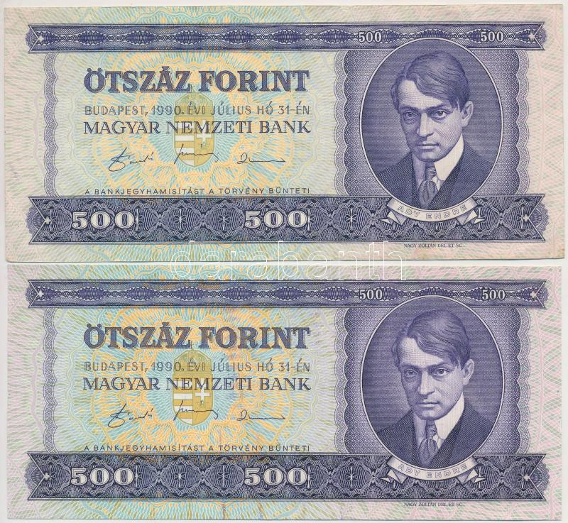 1990. 500Ft (2x) T:I-,III mindkettőnél ropogós papír