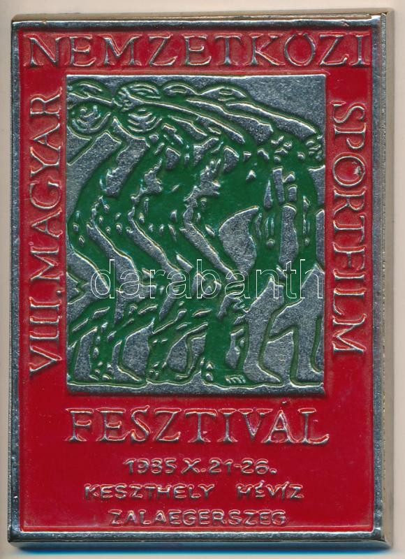 1985. "VIII. Magyar Nemzetközi Sportfilm Fesztivál - Keszthely, Hévíz, Zalaegerszeg" egyoldalas fém plakett (70x96,5mm) T:2