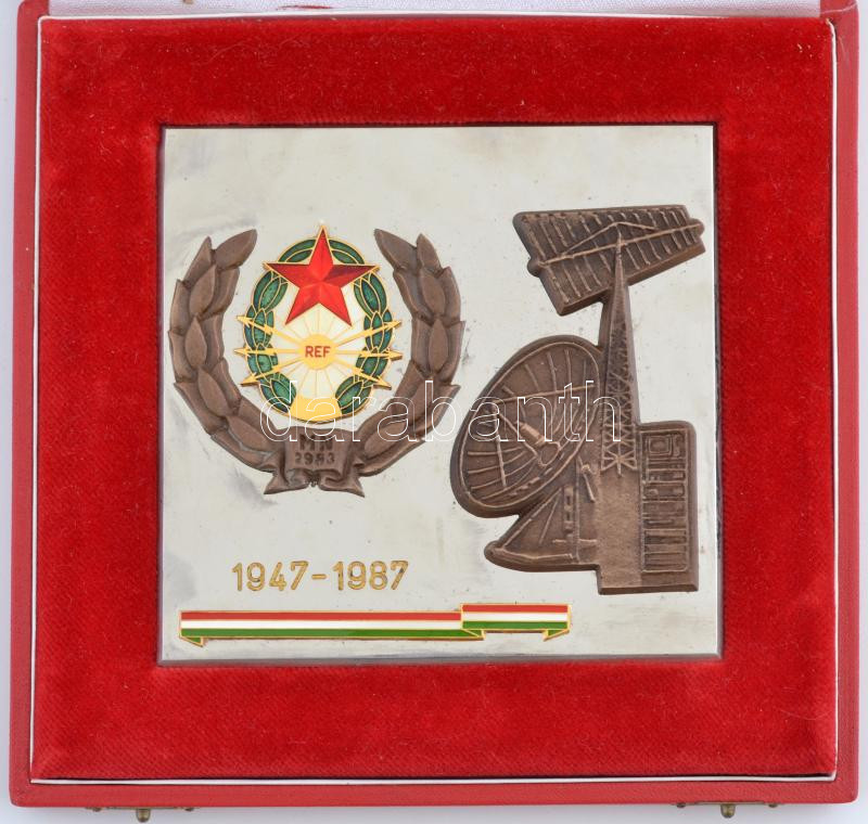 1987. "Magyar Néphadsereg 2983 - az alakulat megalakulásának 40. évfordulója alkalmából" zománcozott fém és Br plakett eredeti sérült tokban, adományozói irattal (120x120mm) T:1-