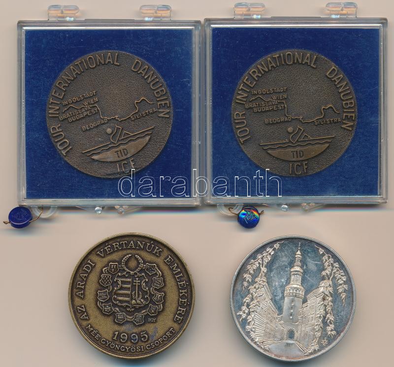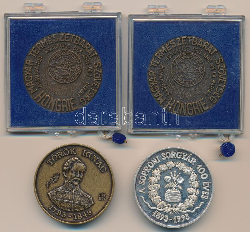 Bognár György (1944-) 1995. "MÉE Gyöngyösi Csoport - Aradi Vértanúk / Török Ignác" Br emlékérem gyűjtÅ‘i tokban (42,5mm) + "A Soproni Sörgyár 100 éves 1895-1995" fém emlékérem dÃsztokban (42,5mm) + DN "Magyar Természetbarát Szövetség / Nemzetközi Duna Túra" Br emlékérem plasztiktokban (42,5mm) (2x) T:2