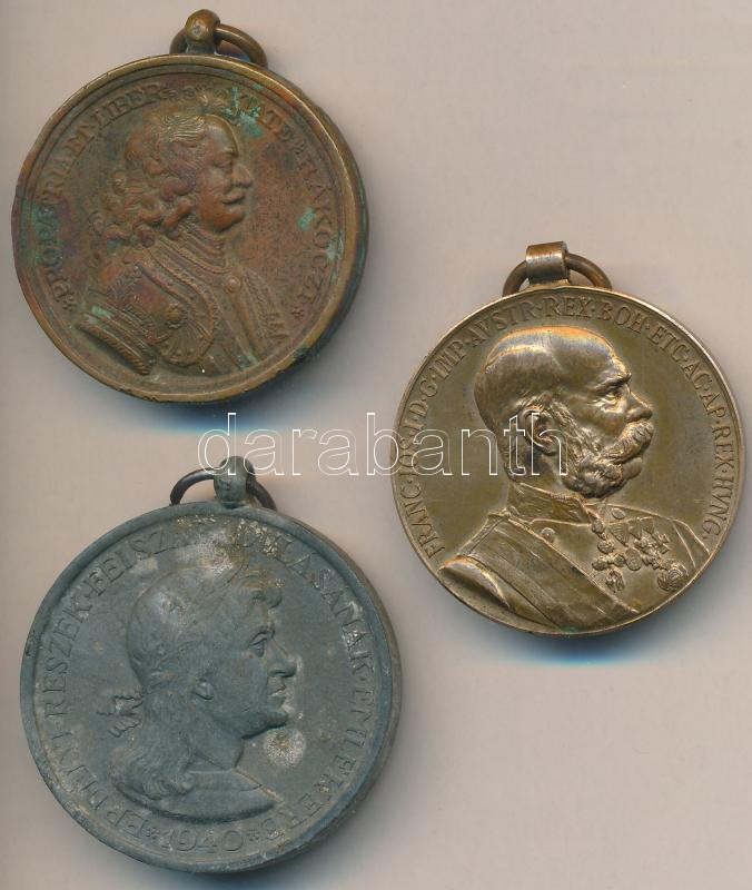 1898. "Jubileumi Emlékérem Fegyveres Erő Számára" Br kitüntetés mellszalag nélkül + 1938. "Felvidéki Emlékérem" Br emlékérem mellszalag nélkül + 1940. "Erdélyi részek felszabadulásának emlékére" cink emlékérem mellszalag nélkül. Szign.:BERÁN T:2,2-