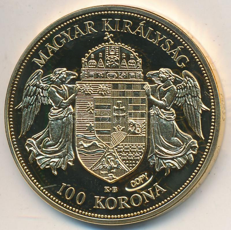 DN "Osztrák-Magyar Monarchia pénzei utánveretben - 1907. 100K / Ferenc József" aranyozott Cu-Ni emlékérem "COPY" beütéssel, tanúsítvánnyal (38mm) T:PP