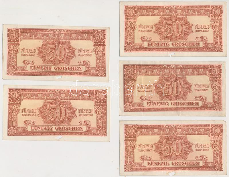 Austria / Allied occupation 1944. 50 Groschen (5x) except one holed C:VF,F