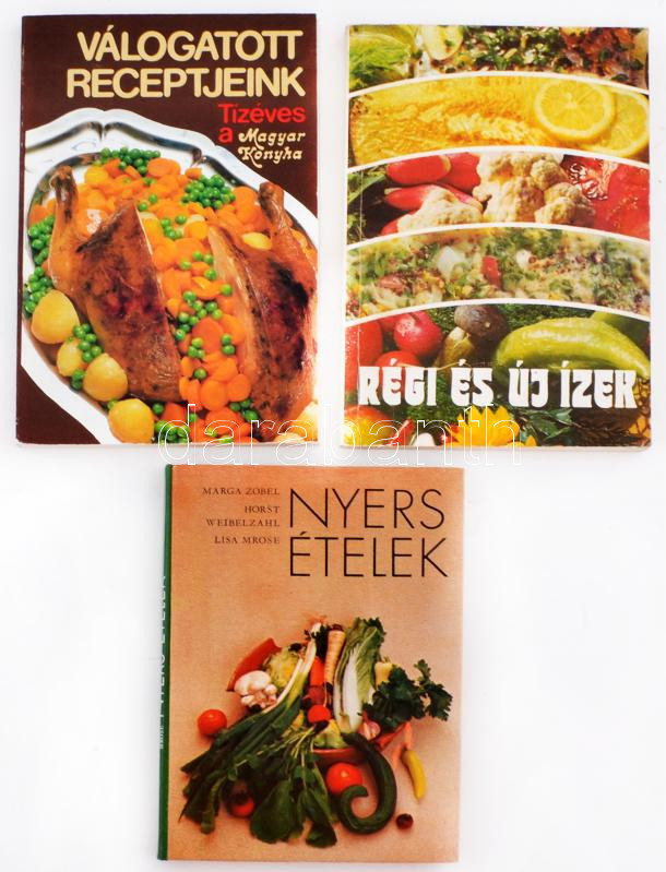 Vegyes szakácskönyv tétel: F. Nagy Angéla: Válogatott receptjeink és Régi és új ízek, Marga Zobel:Nyers ételek,3db, jó állapotban