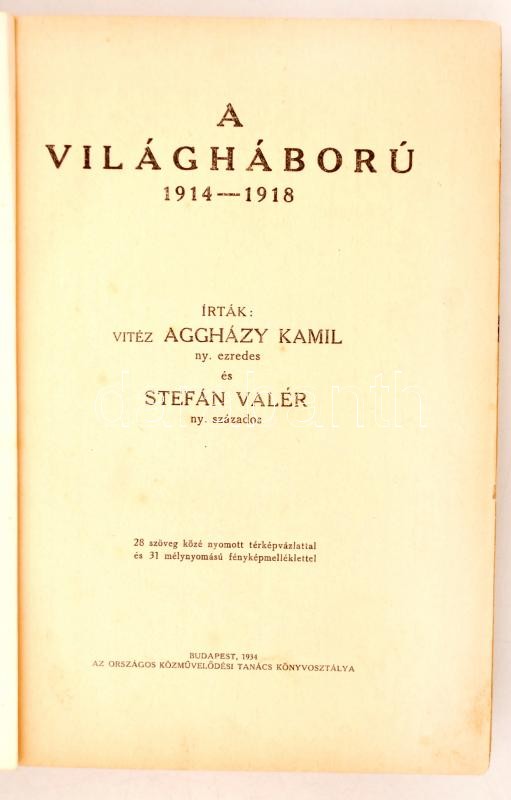 Vitéz Aggházy Kamil-Stefán Valér: A világháború 1914-1918. Bp., 1934, ... https://www.darabanth.com/en/250-Online-auction/250.0/Other-collectibles/Books-Military~1400011/Vitez-Agghazy-Kamil-Stefan-Valer-A-vilaghaboru-1914-1918-Bp-1934-Orszagos-Kozmuvelod~II1207884