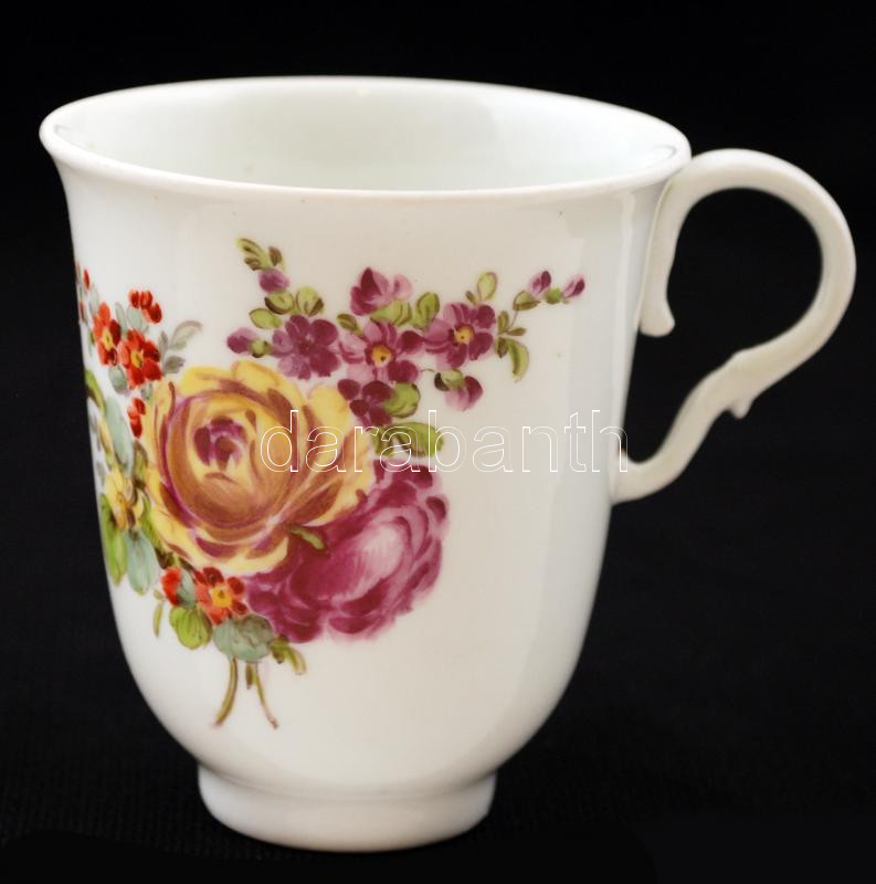 Virágmintás porcelán csésze, kézzel festett, jelzett, apró kopásnyomok...
