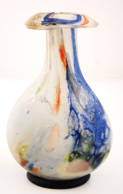 Többrétegű, festett, szakított üvegváza, jelzés nélkül, hibátlan, m: 2...