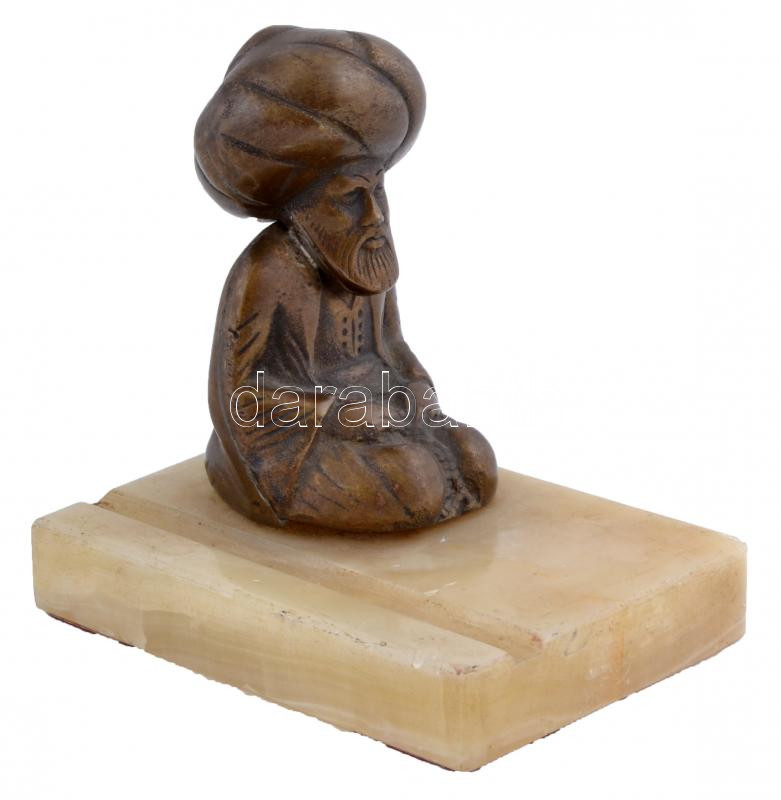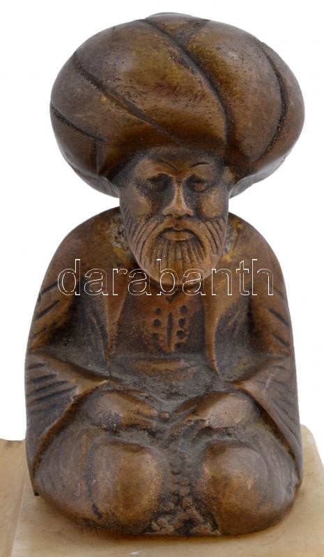 Imádkozó pasa, réz, márvány talapzaton, jelzés nélkül, m: 12 cm