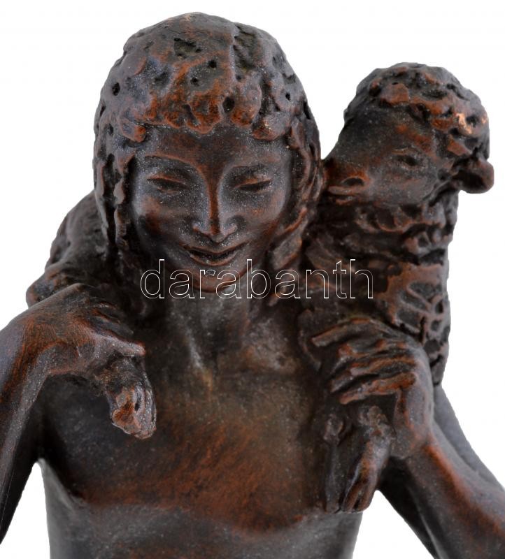 Jelzés nélkül: Férfi akt báránnyal. Bronzírózott műgyanta, fa talapzaton, m:27 cm