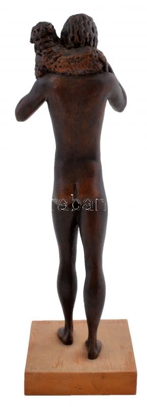 Jelzés nélkül: Férfi akt báránnyal. Bronzírózott műgyanta, fa talapzat...