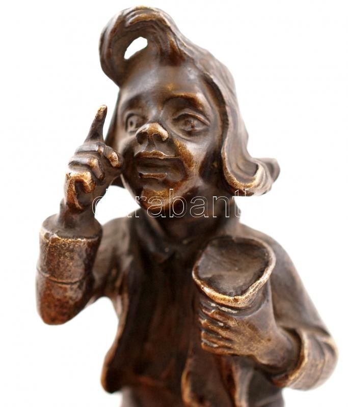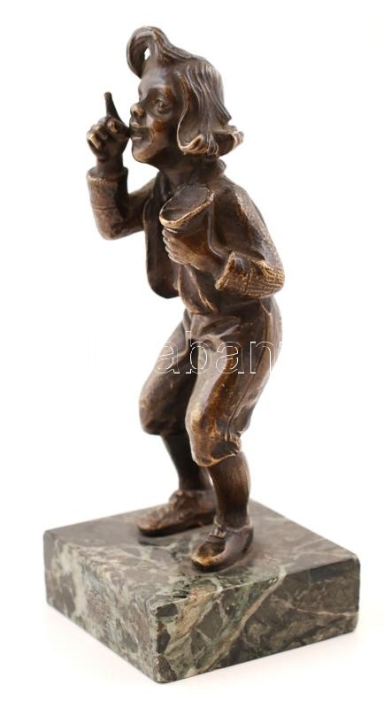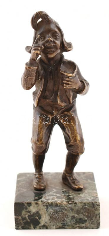 Jelzés nélkül: Iszogató fiú. Bronz, márvány talapzaton, m:12 cm