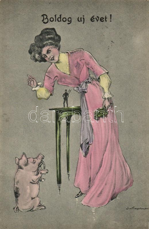 New Year, lady, pig, humour, chimney sweeper s: J. v. Kieszkowski
