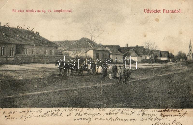 Farnad, Farná; Fő utca, Evangélikus templom / Main street, Evangelical...