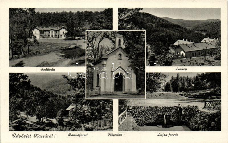 Kassa, Kosice; Bankó szálloda, Bankófüred, Lujza-forrás, kápolna / Hotel, spring, chapel