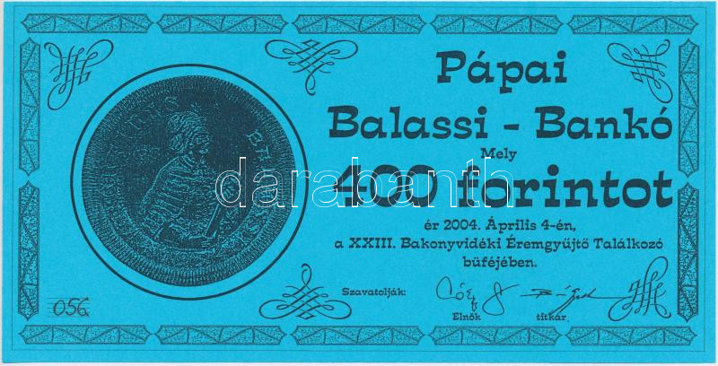 https://www.darabanth.com/en/251-Online-auction/251.0/Numismatics/Emergency-notes-and-coins-tokens~6/Papa-2004-23-Bakonyvideki-Eremgyujto-Talalkozo-400Ft-Balassi-banko-TI~II1209597