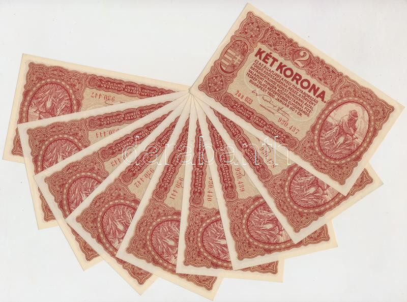 https://www.darabanth.com/en/251-Online-auction/251.0/Numismatics/Hungarian-Banknotes~7/1920-2K-2aa-9x-kozte-8db-sorszamkoveto-es-egy-kozeli-sorszamu-TI-I-II~II1214015