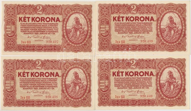 1920. 2K "2aa" (9x), közte 8db sorszámkövető és egy közeli sorszámú T:I,I-,II