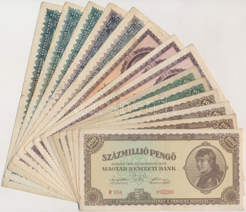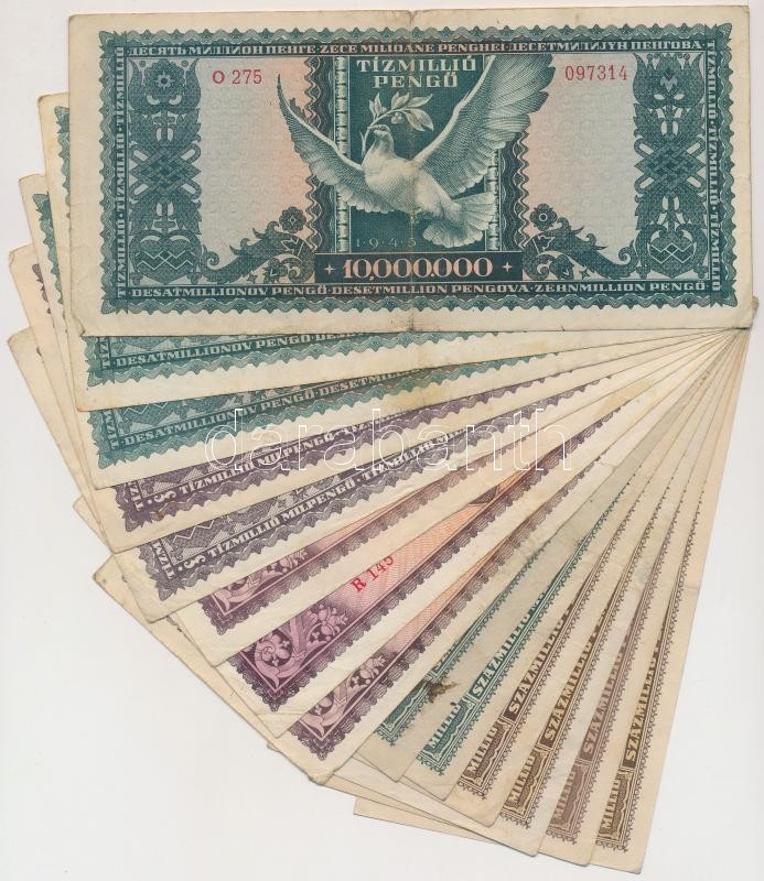 1945. 10.000.000P (3x) + 1946. 100.000.000P (4x) + 1.000.000.000P (3x) + 10.000.000MP (2x) + 100.000.000MP (2x) T:III