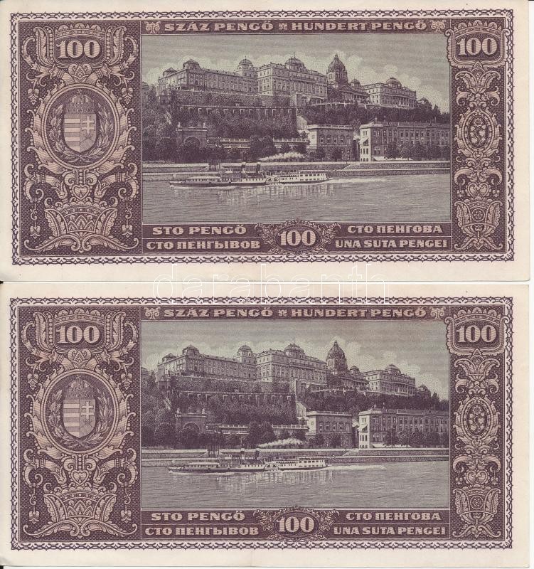 1945. 100P "BÜNTETÉS" szóban "N" felett lemezhiba (2x) közeli sorszámúak T:I,I-