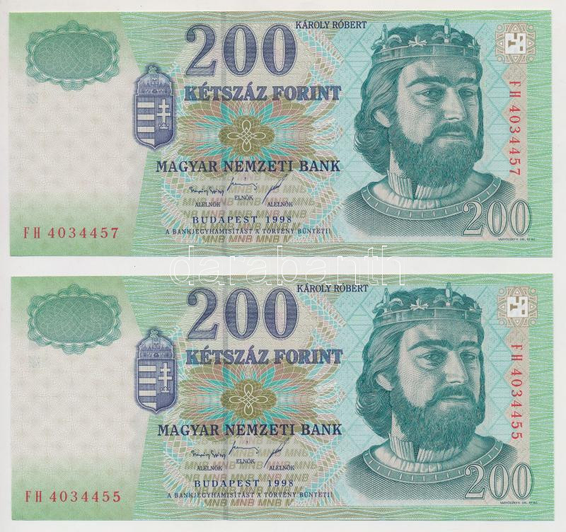1998. 200Ft (2x) egyugrású sorszámokkal T:I- sarokhajlás